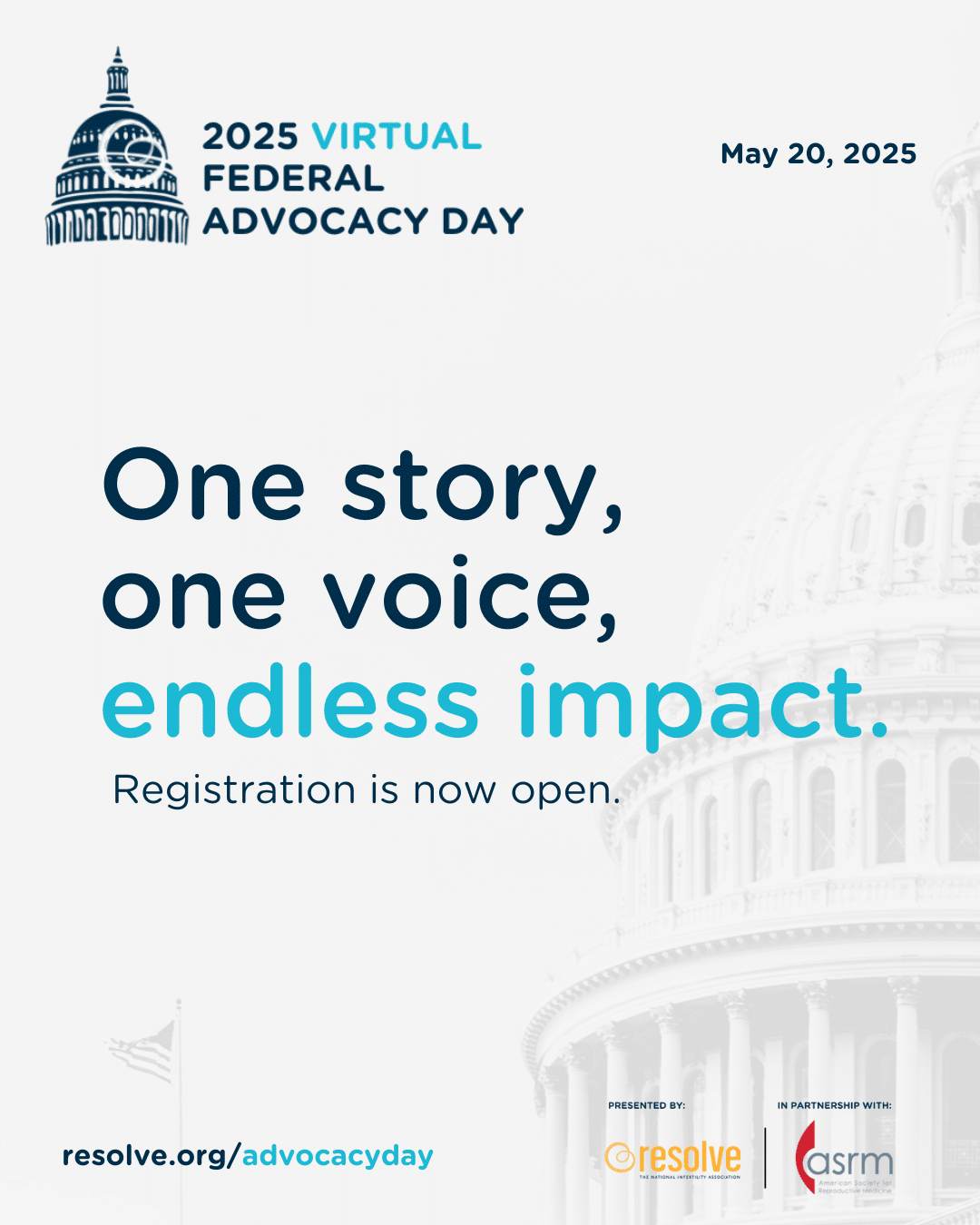 - Tuesday, May 20 at 5:30 pm ET- Advocacy Day Virtual Debrief/Networking: Join your fellow advocates and share what happened during your meetings.